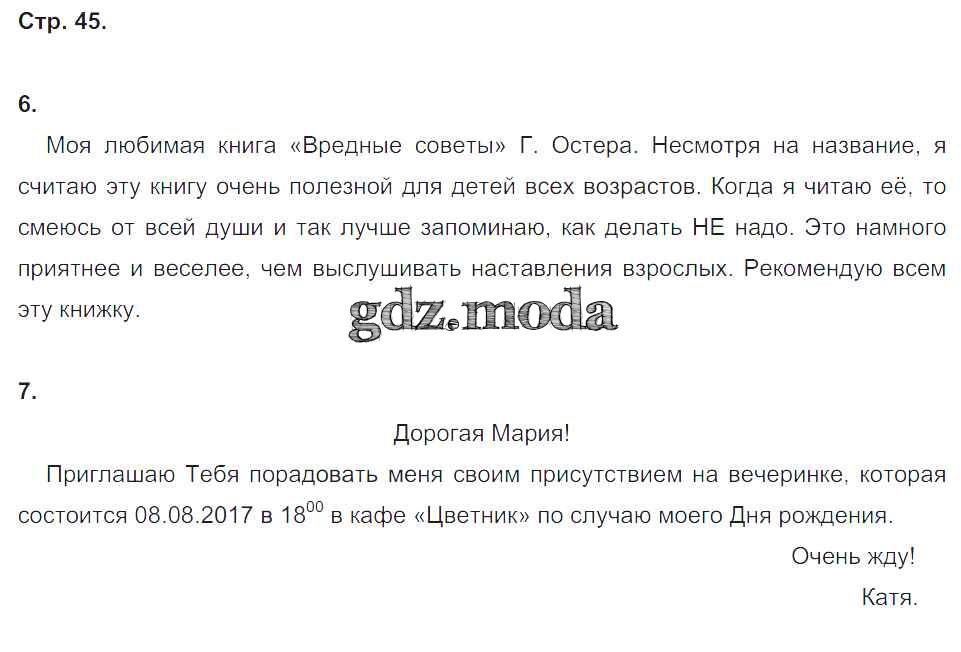 ГДЗ решение к заданию № 45 Русский язык 4 класс Готовимся к всероссийской проверочной работе: Рабочая тетрадь Кузнецова М.И. Просвещение 2017 ФГОС бесплатно на гдз.мода!