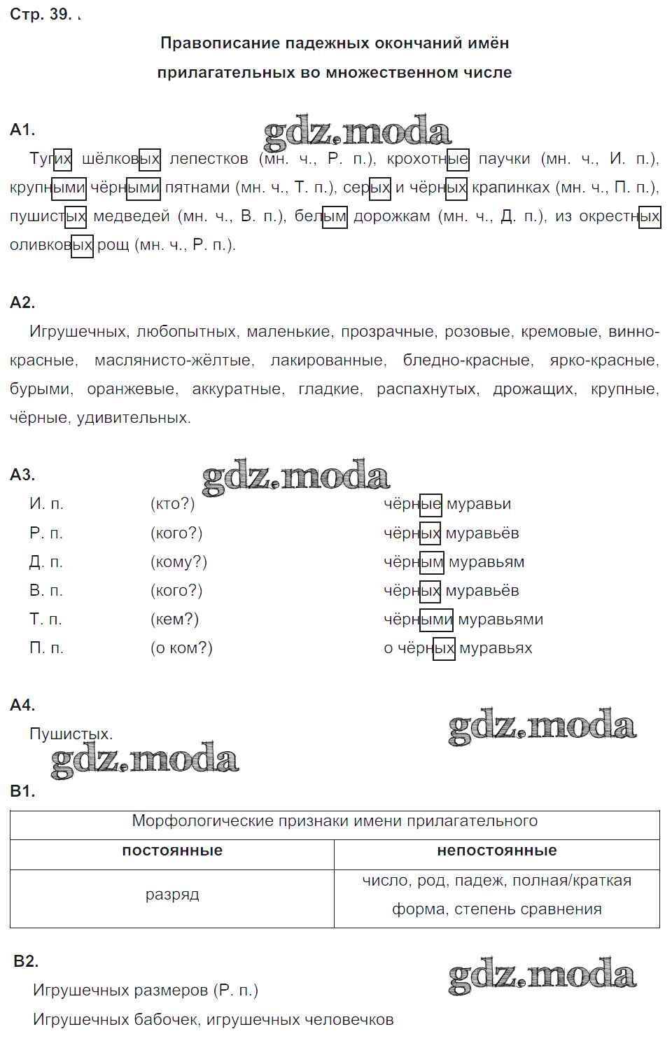 ГДЗ решение к заданию № 39 Русский язык 4 класс Комплексный тренажёр Мишакина Т.Л. Бином 2017 ФГОС бесплатно на гдз.мода!