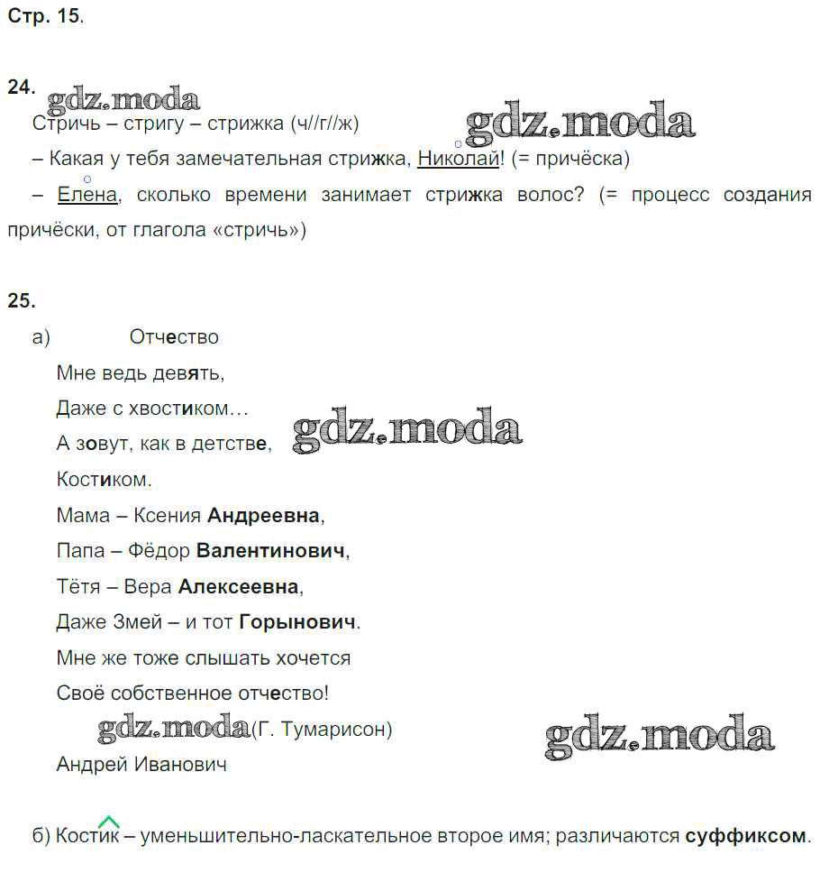 ГДЗ решение к заданию № 15 Русский язык 4 класс рабочая тетрадь Нечаева Н.В. Фёдоров 2014 ФГОС бесплатно на гдз.мода!
