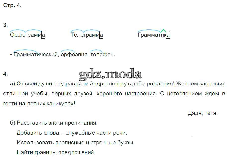 ГДЗ решение к заданию № 4 Русский язык 4 класс рабочая тетрадь Нечаева Н.В. Фёдоров 2014 ФГОС бесплатно на гдз.мода!