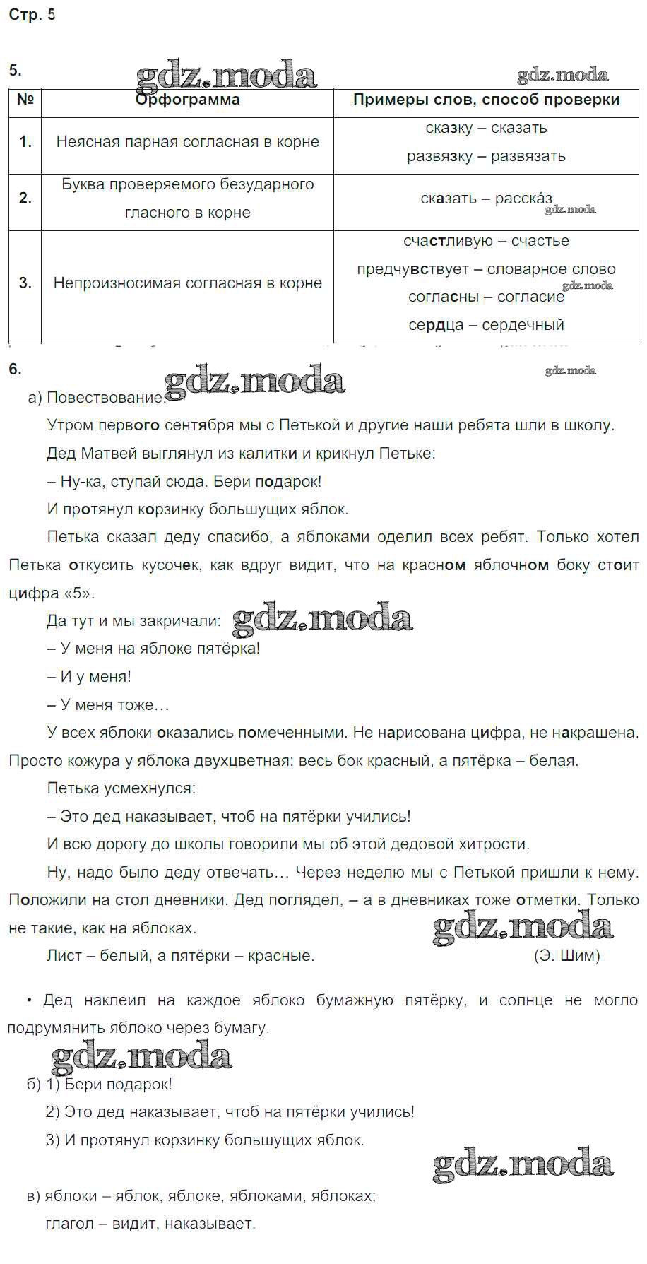 ГДЗ решение к заданию № 5 Русский язык 4 класс рабочая тетрадь Нечаева Н.В. Фёдоров 2014 ФГОС бесплатно на гдз.мода!