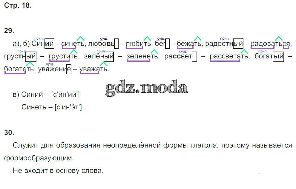 ГДЗ решение к заданию № 18 Русский язык 4 класс рабочая тетрадь Нечаева Н.В. Фёдоров 2014 ФГОС бесплатно на гдз.мода!