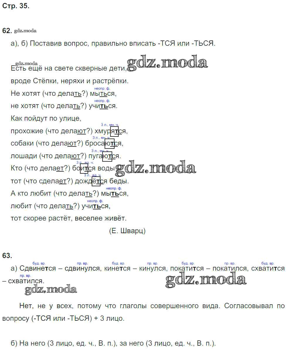 ГДЗ решение к заданию № 35 Русский язык 4 класс рабочая тетрадь Нечаева Н.В. Фёдоров 2014 ФГОС бесплатно на гдз.мода!