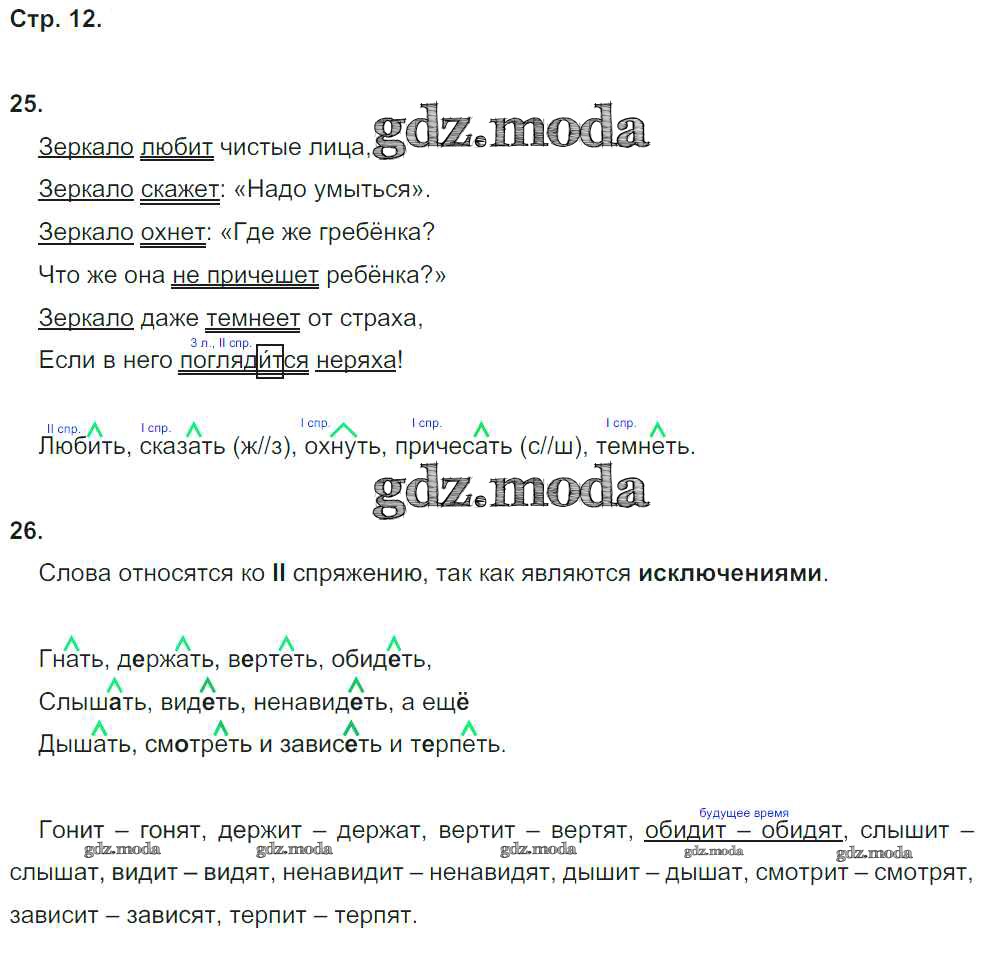 ГДЗ решение к заданию № 12 Русский язык 4 класс рабочая тетрадь Нечаева Н.В. Фёдоров 2014 ФГОС бесплатно на гдз.мода!