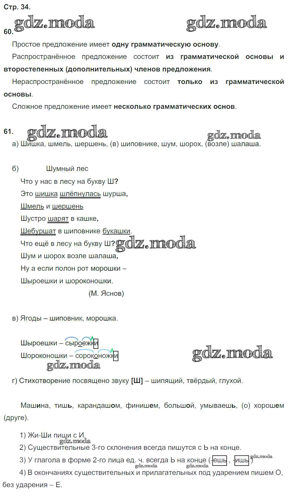 ГДЗ решение к заданию № 34 Русский язык 4 класс рабочая тетрадь Нечаева Н.В. Фёдоров 2014 ФГОС бесплатно на гдз.мода!
