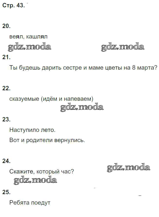 ГДЗ решение к заданию № 43 Русский язык 4 класс рабочая тетрадь Нечаева Н.В. Фёдоров 2014 ФГОС бесплатно на гдз.мода!