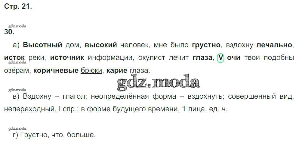 ГДЗ решение к заданию № 21 Русский язык 4 класс рабочая тетрадь Нечаева Н.В. Фёдоров 2014 ФГОС бесплатно на гдз.мода!