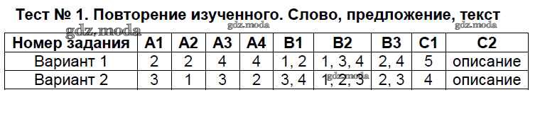 ГДЗ решение к заданию № Тесты №1. Повторение изученного. Слово, предложение, текст Русский язык 4 класс контрольно-измерительные материалы (КИМ) Никифорова Т.Ю. ВАКО 2017 ФГОС бесплатно на гдз.мода!
