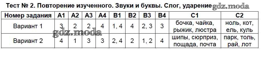 ГДЗ решение к заданию № Тесты №2. Повторение изученного. Звуки и буквы. Слог, ударение Русский язык 4 класс контрольно-измерительные материалы (КИМ) Никифорова Т.Ю. ВАКО 2017 ФГОС бесплатно на гдз.мода!
