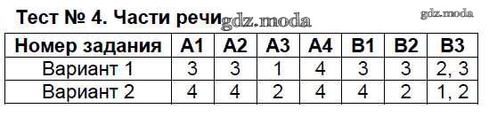 ГДЗ решение к заданию № Тесты №4. Части речи Русский язык 4 класс контрольно-измерительные материалы (КИМ) Никифорова Т.Ю. ВАКО 2017 ФГОС бесплатно на гдз.мода!