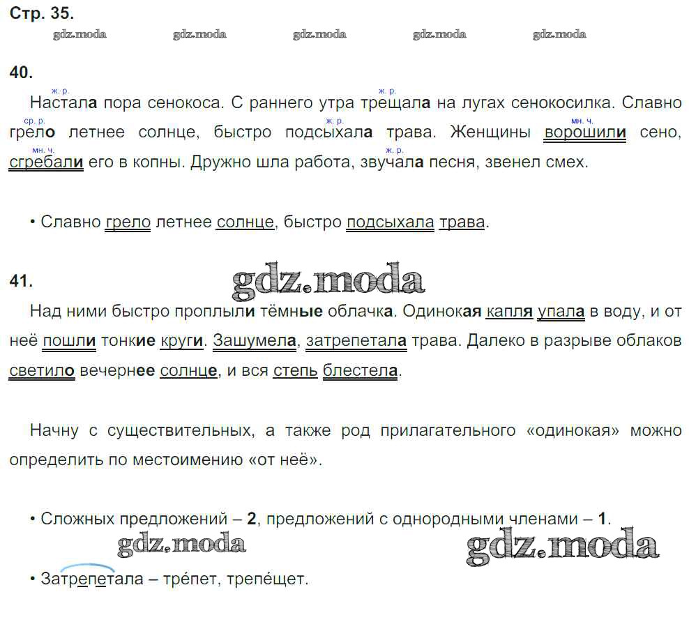 ГДЗ решение к заданию № 35 Русский язык 4 класс рабочая тетрадь Песняева Н.А. Просвещение 2017 Часть 1, Часть 2 ФГОС бесплатно на гдз.мода!