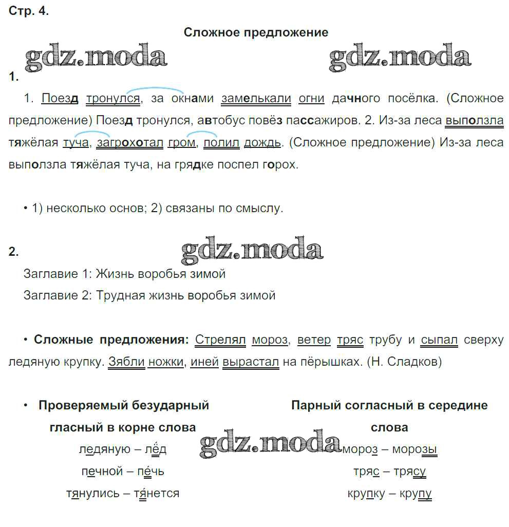 ГДЗ решение к заданию № 4 Русский язык 4 класс рабочая тетрадь Песняева Н.А. Просвещение 2017 Часть 1, Часть 2 ФГОС бесплатно на гдз.мода!