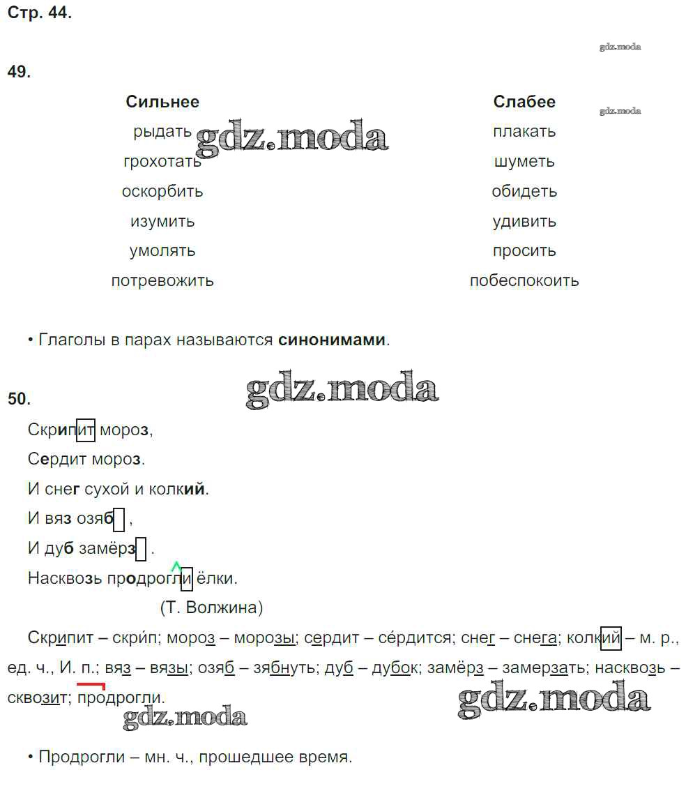 ГДЗ решение к заданию № 44 Русский язык 4 класс рабочая тетрадь Песняева Н.А. Просвещение 2017 Часть 1, Часть 2 ФГОС бесплатно на гдз.мода!