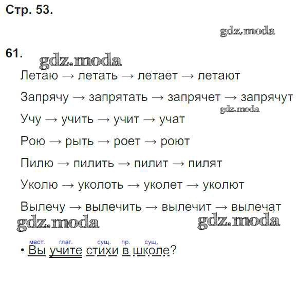 ГДЗ решение к заданию № 53 Русский язык 4 класс рабочая тетрадь Песняева Н.А. Просвещение 2017 Часть 1, Часть 2 ФГОС бесплатно на гдз.мода!