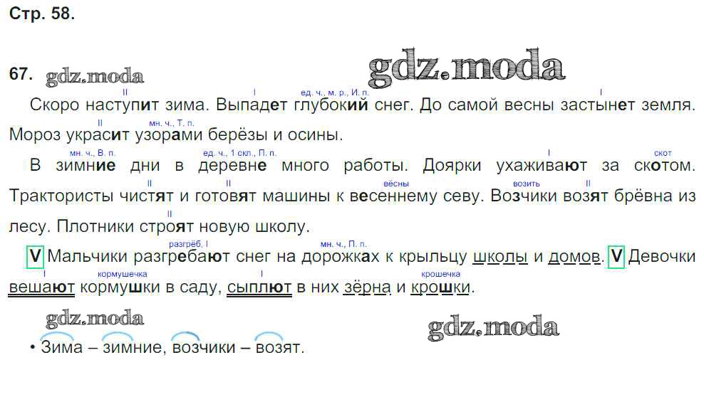 ГДЗ решение к заданию № 58 Русский язык 4 класс рабочая тетрадь Песняева Н.А. Просвещение 2017 Часть 1, Часть 2 ФГОС бесплатно на гдз.мода!
