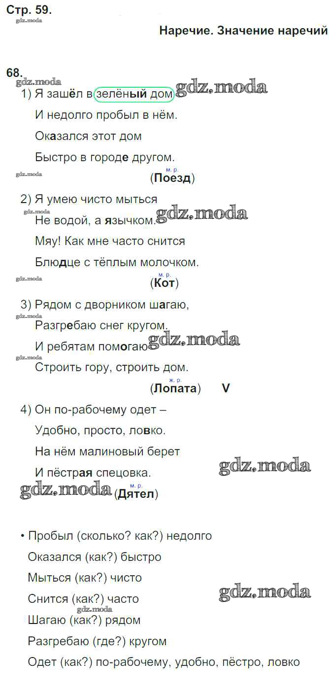 ГДЗ решение к заданию № 59 Русский язык 4 класс рабочая тетрадь Песняева Н.А. Просвещение 2017 Часть 1, Часть 2 ФГОС бесплатно на гдз.мода!