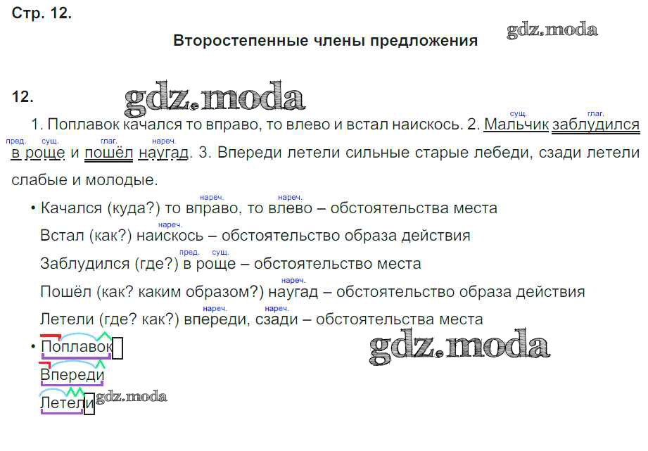ГДЗ решение к заданию № 12 Русский язык 4 класс рабочая тетрадь Песняева Н.А. Просвещение 2017 Часть 1, Часть 2 ФГОС бесплатно на гдз.мода!