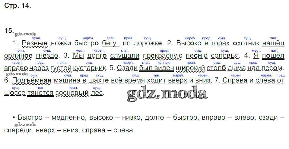 ГДЗ решение к заданию № 14 Русский язык 4 класс рабочая тетрадь Песняева Н.А. Просвещение 2017 Часть 1, Часть 2 ФГОС бесплатно на гдз.мода!