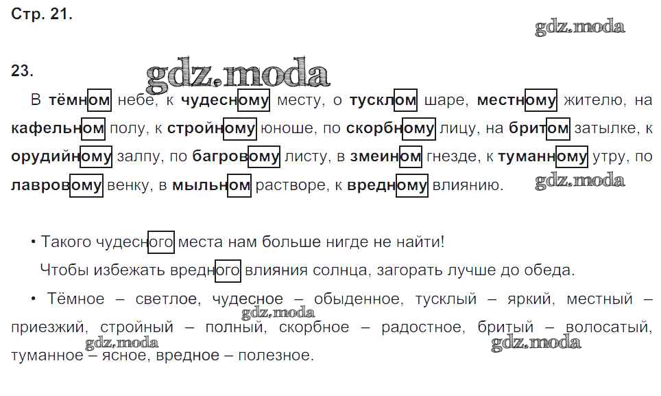ГДЗ решение к заданию № 21 Русский язык 4 класс рабочая тетрадь Песняева Н.А. Просвещение 2017 Часть 1, Часть 2 ФГОС бесплатно на гдз.мода!