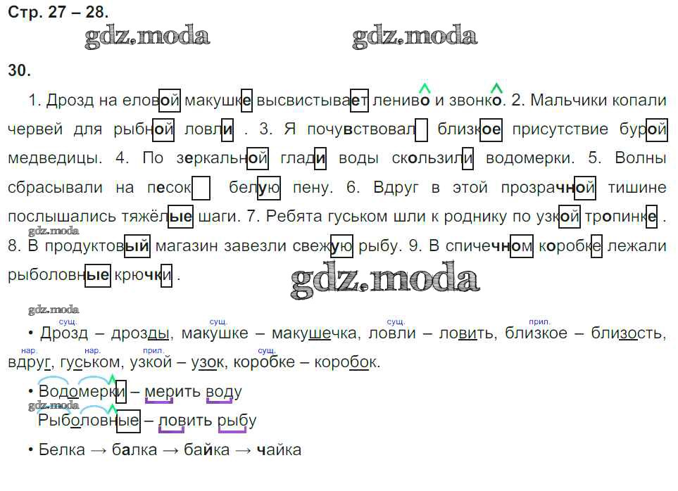ГДЗ решение к заданию № 27 Русский язык 4 класс рабочая тетрадь Песняева Н.А. Просвещение 2017 Часть 1, Часть 2 ФГОС бесплатно на гдз.мода!
