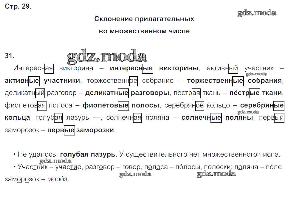 ГДЗ решение к заданию № 29 Русский язык 4 класс рабочая тетрадь Песняева Н.А. Просвещение 2017 Часть 1, Часть 2 ФГОС бесплатно на гдз.мода!