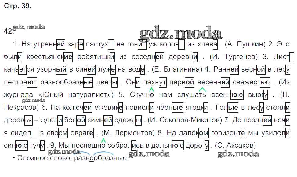 ГДЗ решение к заданию № 39 Русский язык 4 класс рабочая тетрадь Песняева Н.А. Просвещение 2017 Часть 1, Часть 2 ФГОС бесплатно на гдз.мода!