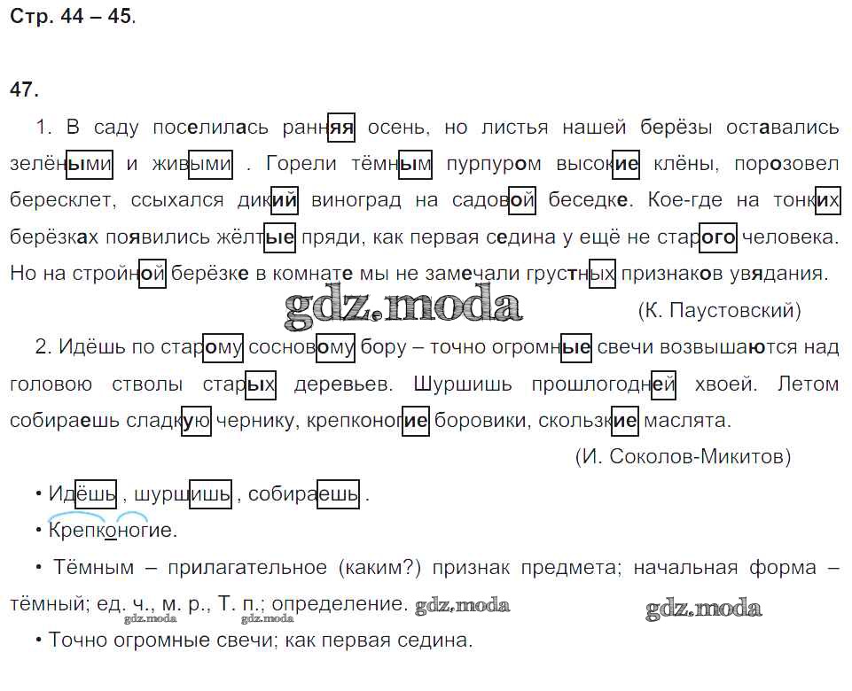 ГДЗ решение к заданию № 44 Русский язык 4 класс рабочая тетрадь Песняева Н.А. Просвещение 2017 Часть 1, Часть 2 ФГОС бесплатно на гдз.мода!