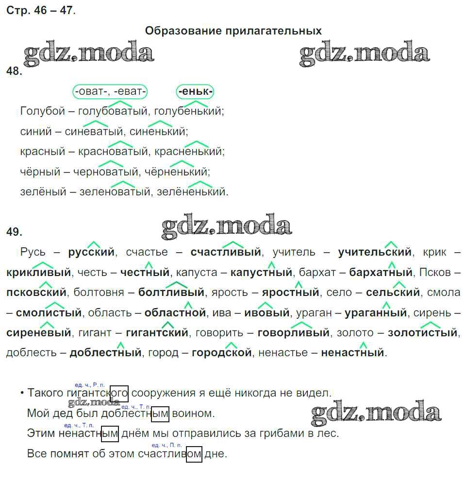 ГДЗ решение к заданию № 47 Русский язык 4 класс рабочая тетрадь Песняева Н.А. Просвещение 2017 Часть 1, Часть 2 ФГОС бесплатно на гдз.мода!