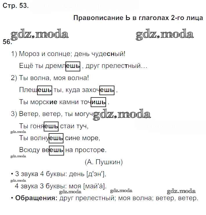 ГДЗ решение к заданию № 53 Русский язык 4 класс рабочая тетрадь Песняева Н.А. Просвещение 2017 Часть 1, Часть 2 ФГОС бесплатно на гдз.мода!