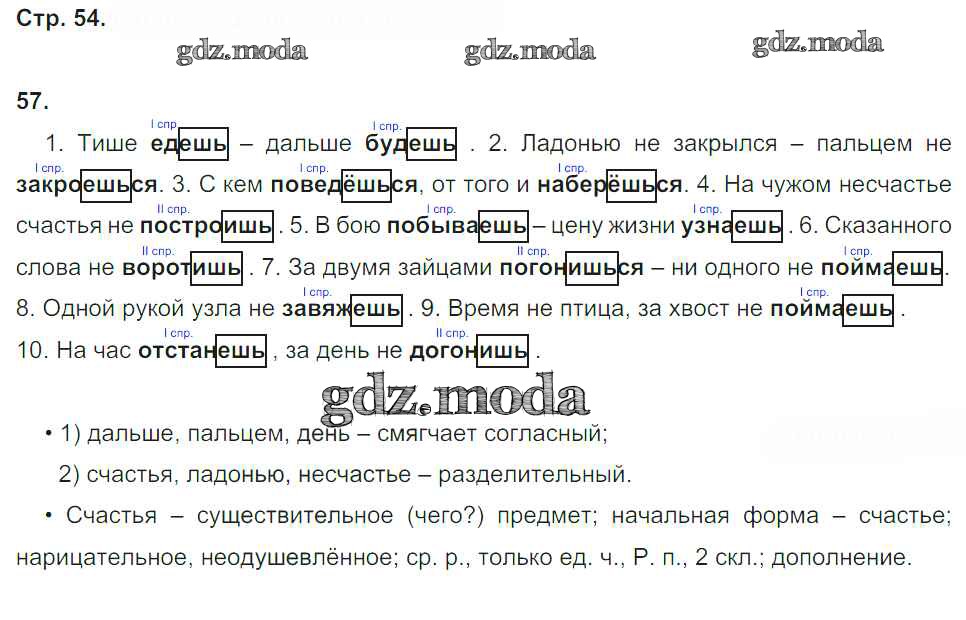 ГДЗ решение к заданию № 54 Русский язык 4 класс рабочая тетрадь Песняева Н.А. Просвещение 2017 Часть 1, Часть 2 ФГОС бесплатно на гдз.мода!