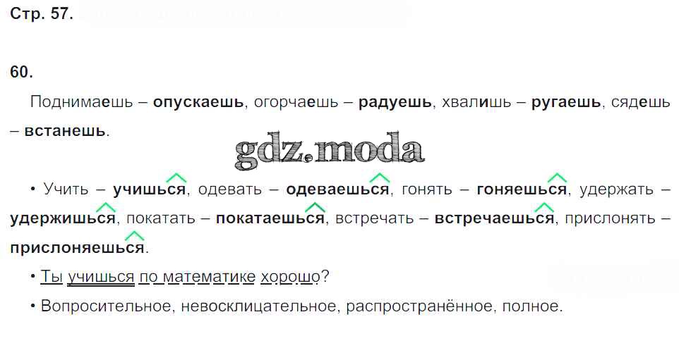 ГДЗ решение к заданию № 57 Русский язык 4 класс рабочая тетрадь Песняева Н.А. Просвещение 2017 Часть 1, Часть 2 ФГОС бесплатно на гдз.мода!