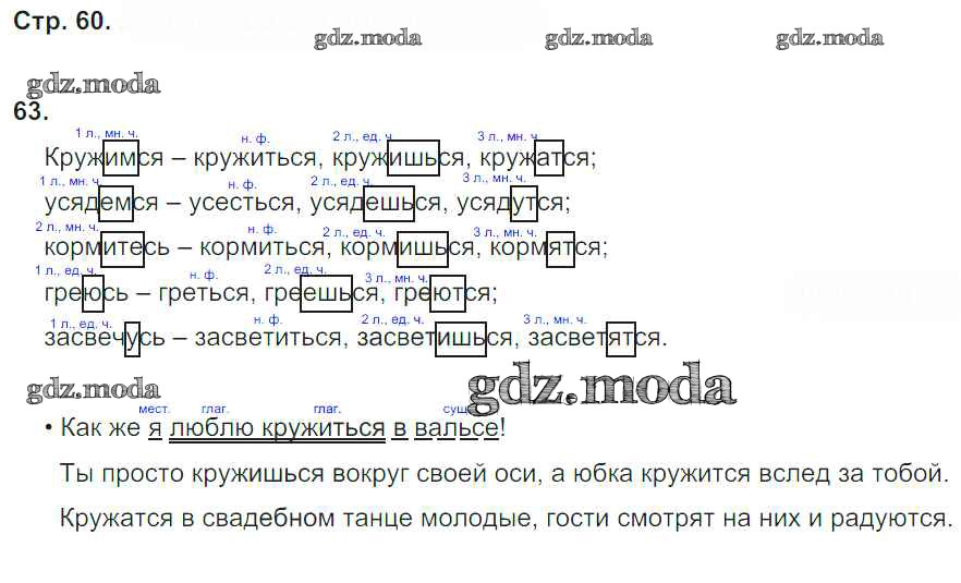 ГДЗ решение к заданию № 60 Русский язык 4 класс рабочая тетрадь Песняева Н.А. Просвещение 2017 Часть 1, Часть 2 ФГОС бесплатно на гдз.мода!