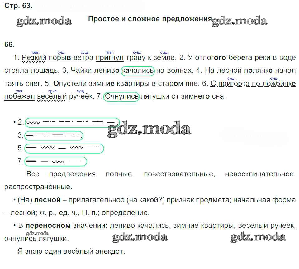 ГДЗ решение к заданию № 63 Русский язык 4 класс рабочая тетрадь Песняева Н.А. Просвещение 2017 Часть 1, Часть 2 ФГОС бесплатно на гдз.мода!