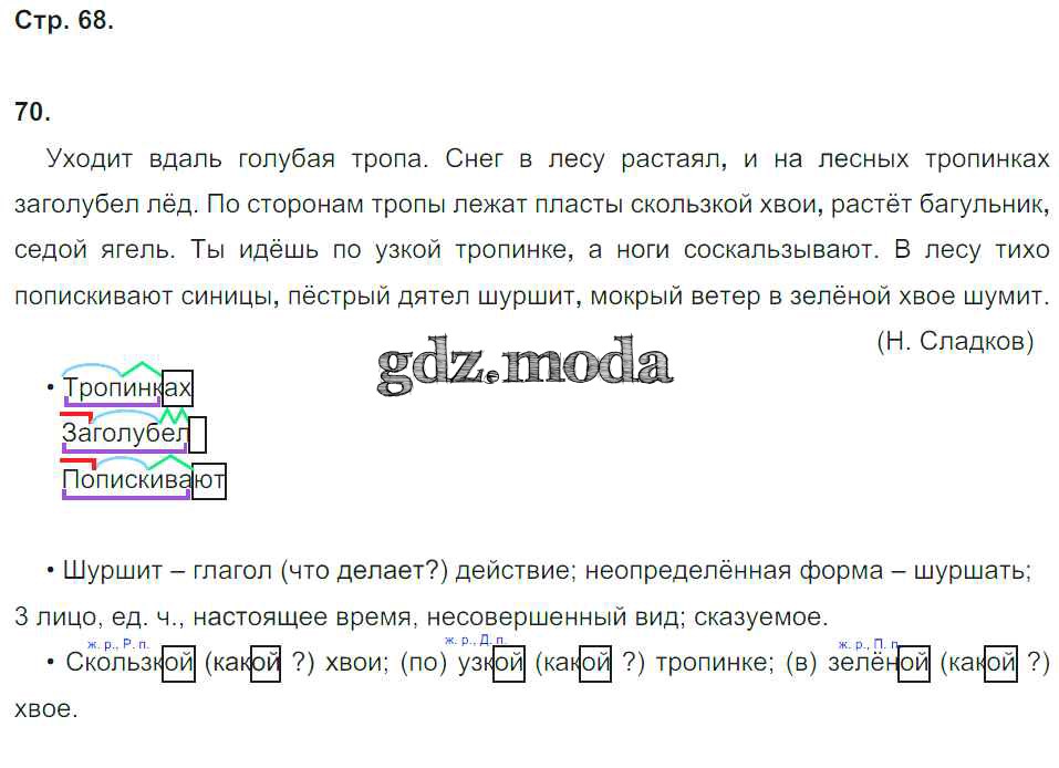 ГДЗ решение к заданию № 68 Русский язык 4 класс рабочая тетрадь Песняева Н.А. Просвещение 2017 Часть 1, Часть 2 ФГОС бесплатно на гдз.мода!