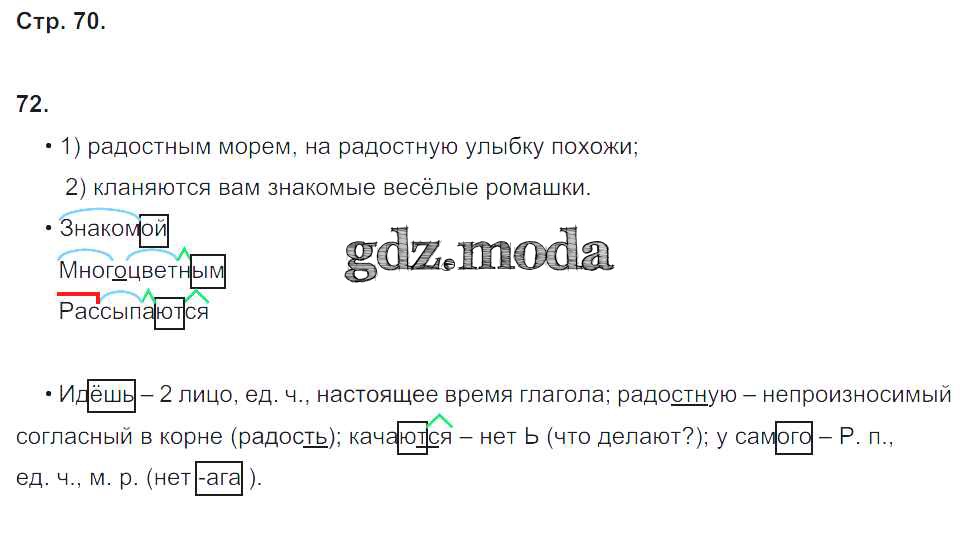 ГДЗ решение к заданию № 70 Русский язык 4 класс рабочая тетрадь Песняева Н.А. Просвещение 2017 Часть 1, Часть 2 ФГОС бесплатно на гдз.мода!