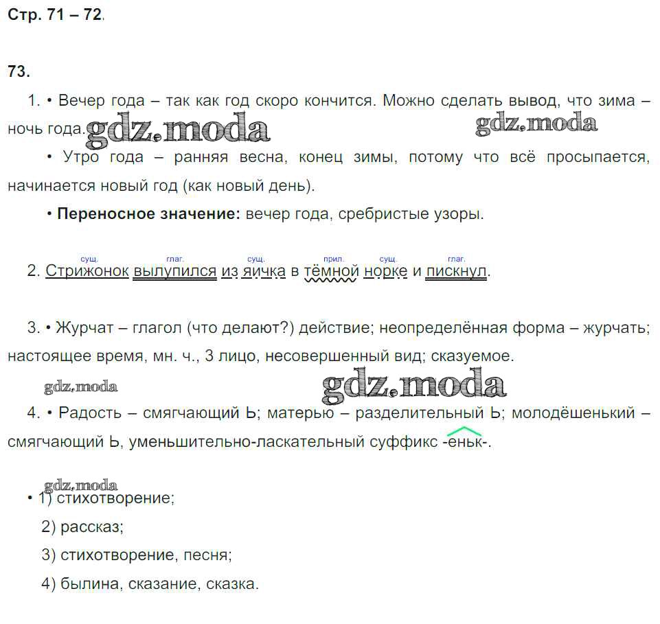 ГДЗ решение к заданию № 72 Русский язык 4 класс рабочая тетрадь Песняева Н.А. Просвещение 2017 Часть 1, Часть 2 ФГОС бесплатно на гдз.мода!