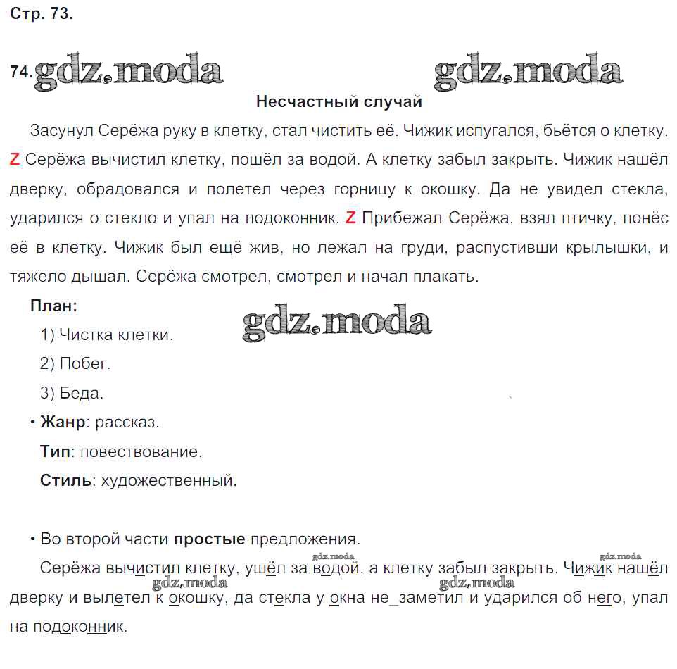 ГДЗ решение к заданию № 73 Русский язык 4 класс рабочая тетрадь Песняева Н.А. Просвещение 2017 Часть 1, Часть 2 ФГОС бесплатно на гдз.мода!