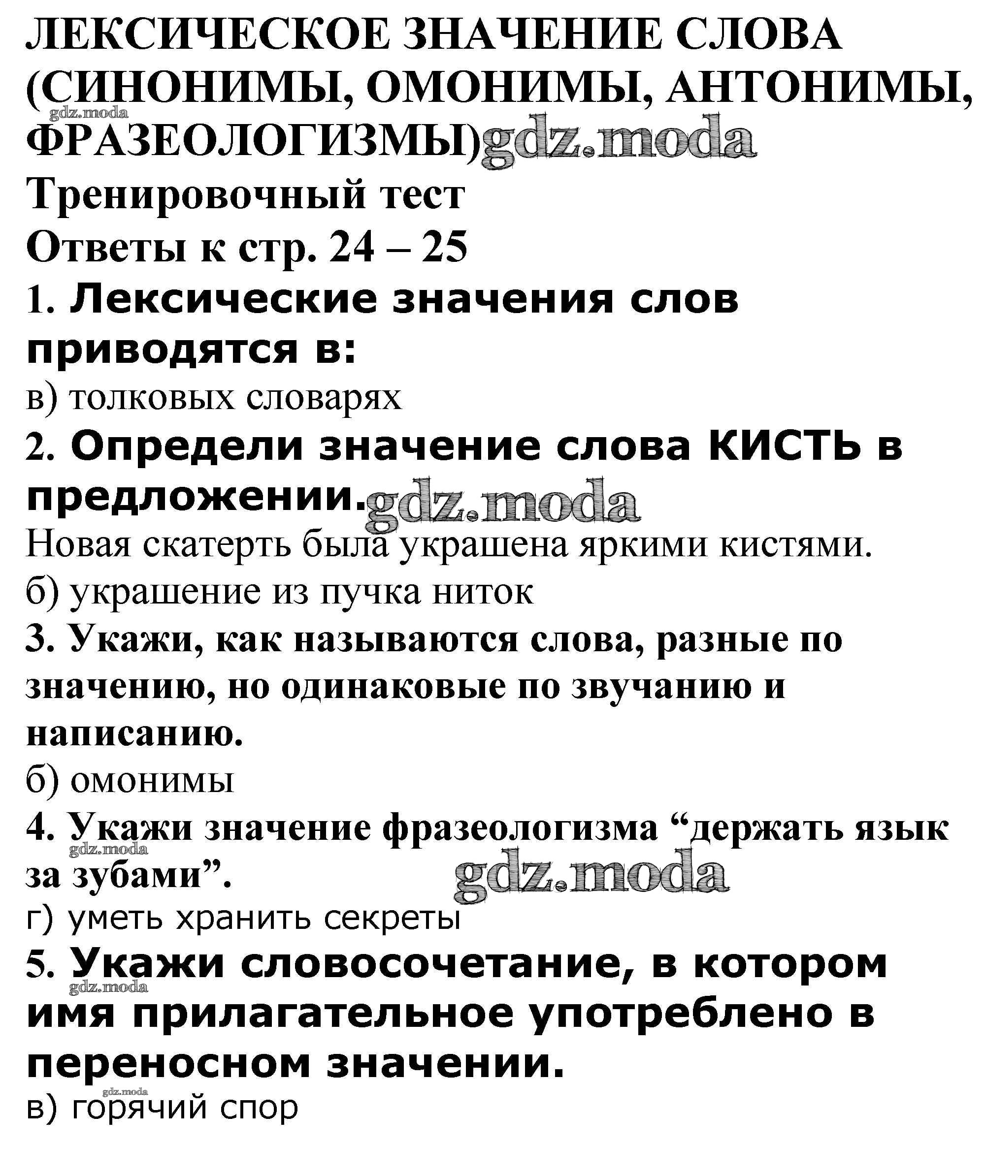ГДЗ решение к заданию № Тренировочный тест стр. 24 – 25 Русский язык 4 класс проверочные и контрольные работы Максимова Т.Н. ВАКО 2017 ФГОС бесплатно на гдз.мода!