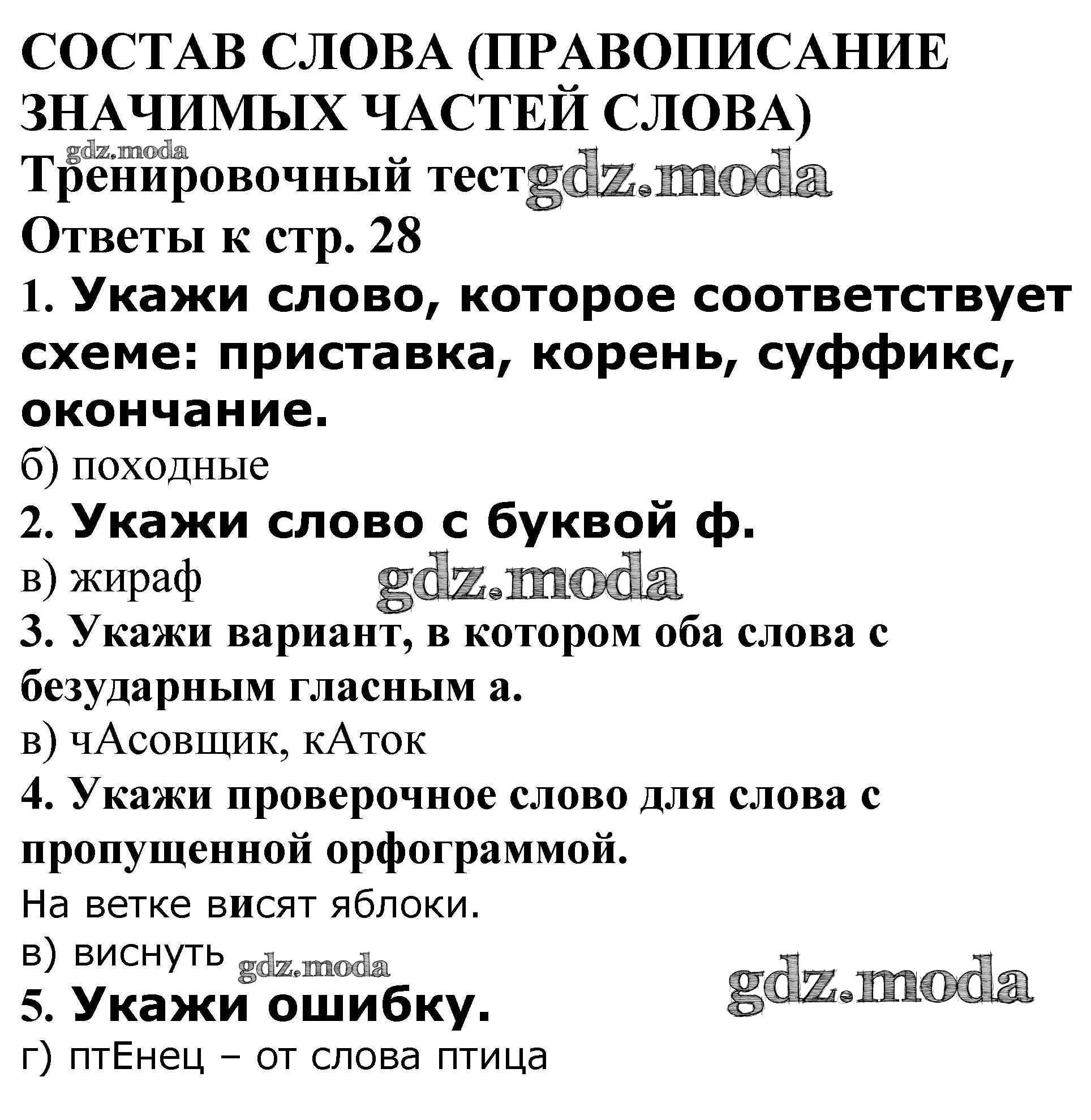 ГДЗ решение к заданию № Тренировочный тест стр. 28 Русский язык 4 класс проверочные и контрольные работы Максимова Т.Н. ВАКО 2017 ФГОС бесплатно на гдз.мода!
