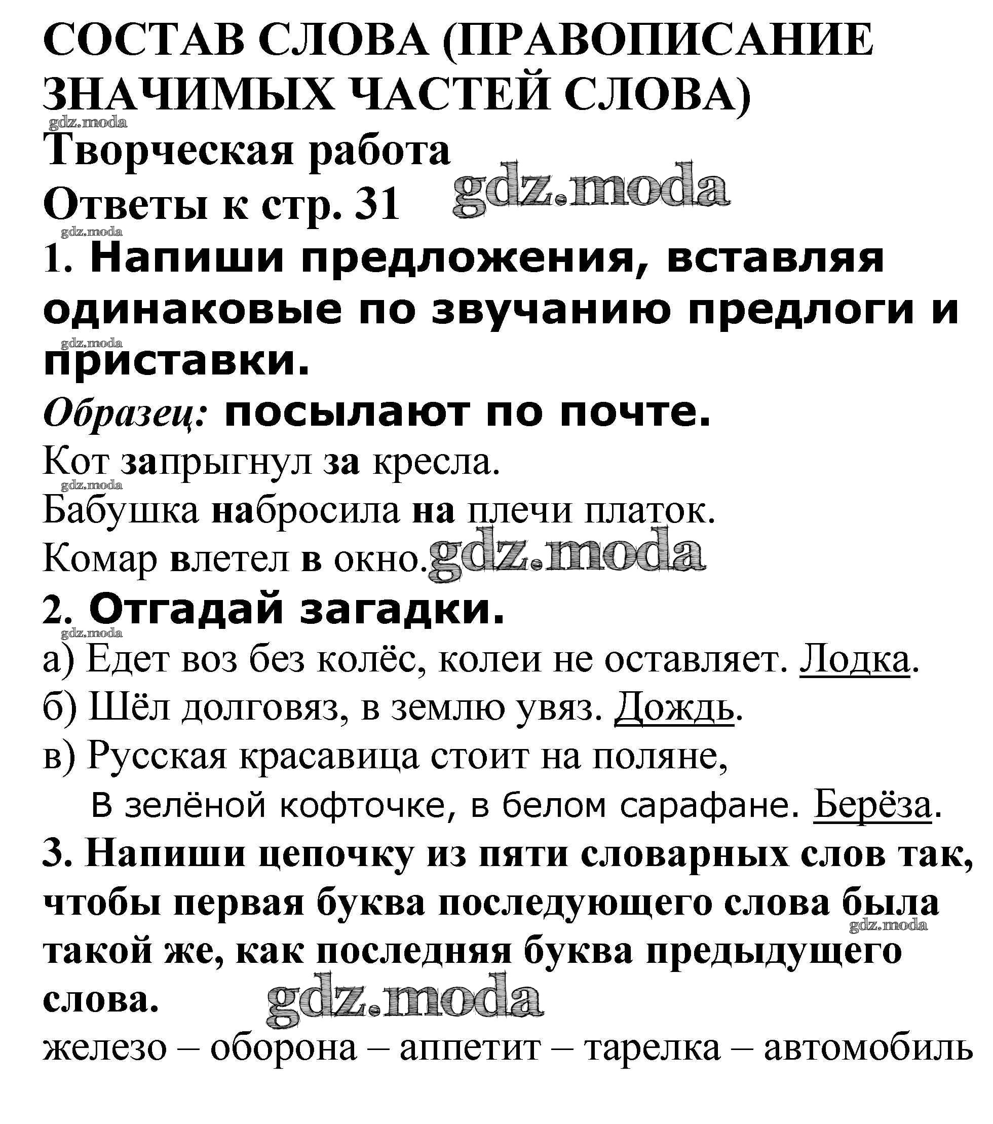 ГДЗ решение к заданию № Творческая работа стр. 31 Русский язык 4 класс проверочные и контрольные работы Максимова Т.Н. ВАКО 2017 ФГОС бесплатно на гдз.мода!