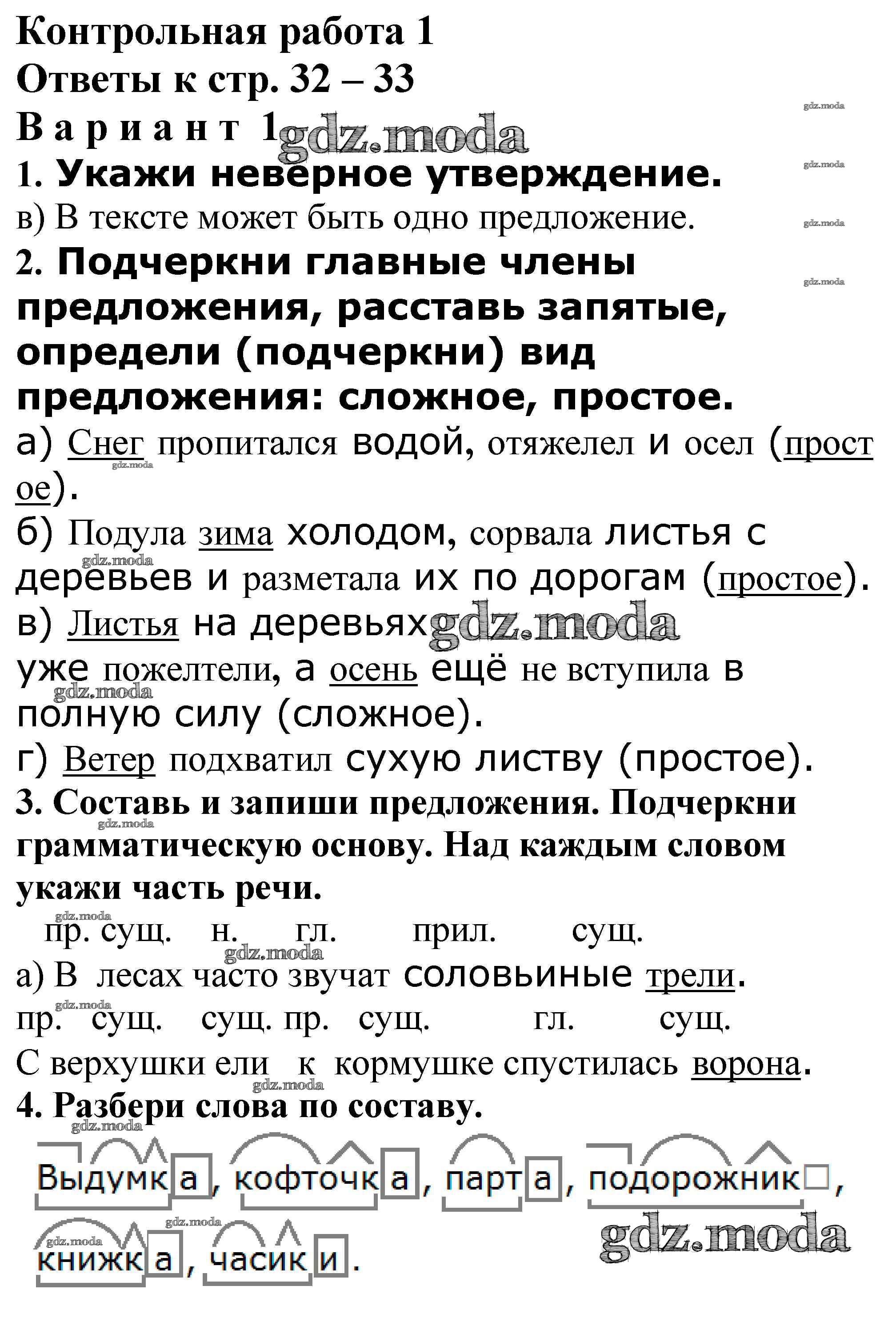 ГДЗ решение к заданию № Контрольная работа 1 стр. 32 – 35 Русский язык 4 класс проверочные и контрольные работы Максимова Т.Н. ВАКО 2017 ФГОС бесплатно на гдз.мода!