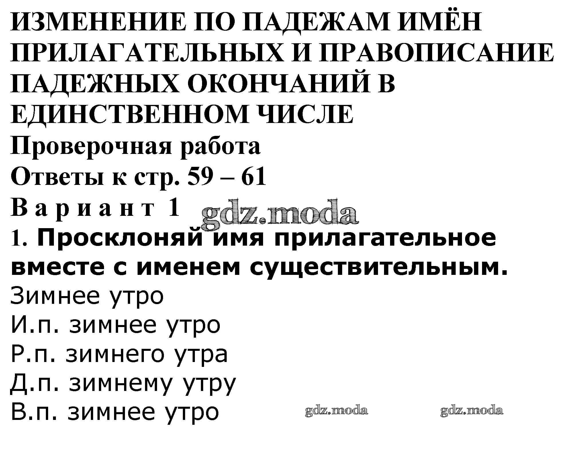 ГДЗ решение к заданию № Проверочная работа стр. 59 – 61 Русский язык 4 класс проверочные и контрольные работы Максимова Т.Н. ВАКО 2017 ФГОС бесплатно на гдз.мода!