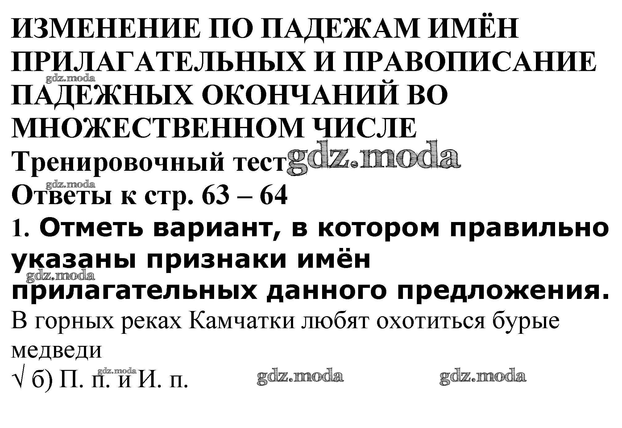 ГДЗ решение к заданию № Тренировочный тест стр. 63 – 64 Русский язык 4 класс проверочные и контрольные работы Максимова Т.Н. ВАКО 2017 ФГОС бесплатно на гдз.мода!