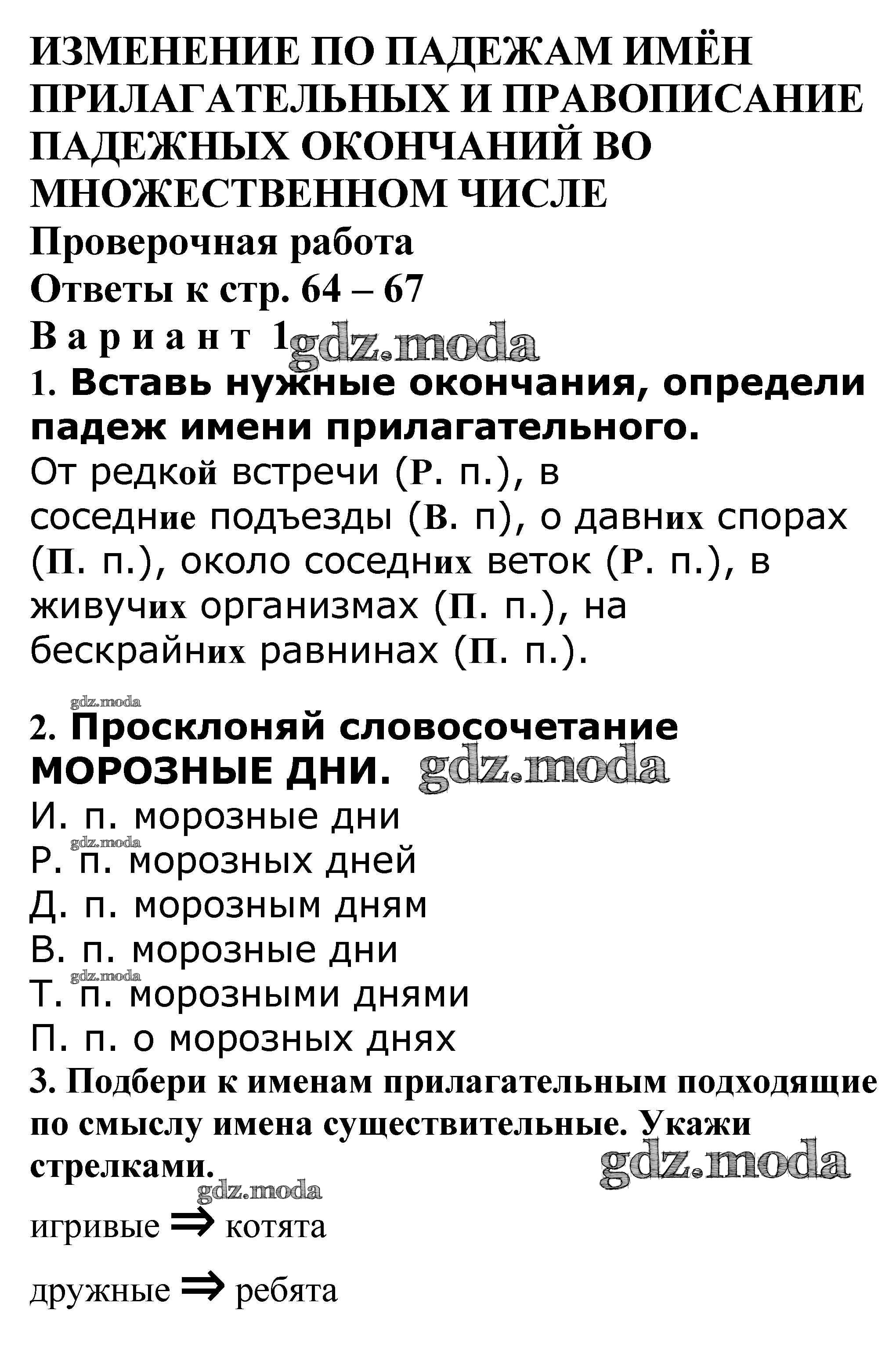 ГДЗ решение к заданию № Проверочная работа стр. 64 – 67 Русский язык 4 класс проверочные и контрольные работы Максимова Т.Н. ВАКО 2017 ФГОС бесплатно на гдз.мода!
