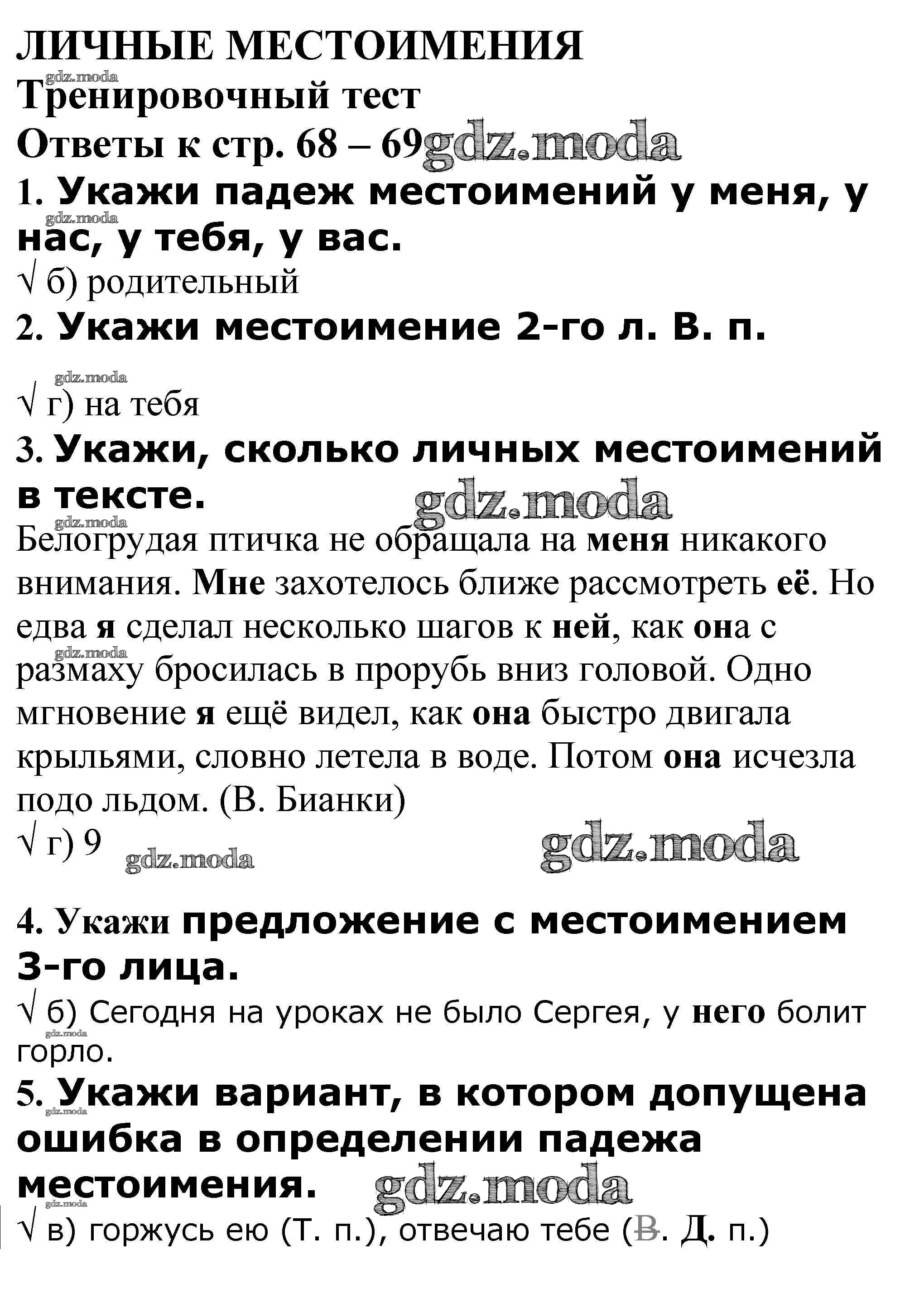 ГДЗ решение к заданию № Тренировочный тест стр. 68 – 69 Русский язык 4 класс проверочные и контрольные работы Максимова Т.Н. ВАКО 2017 ФГОС бесплатно на гдз.мода!
