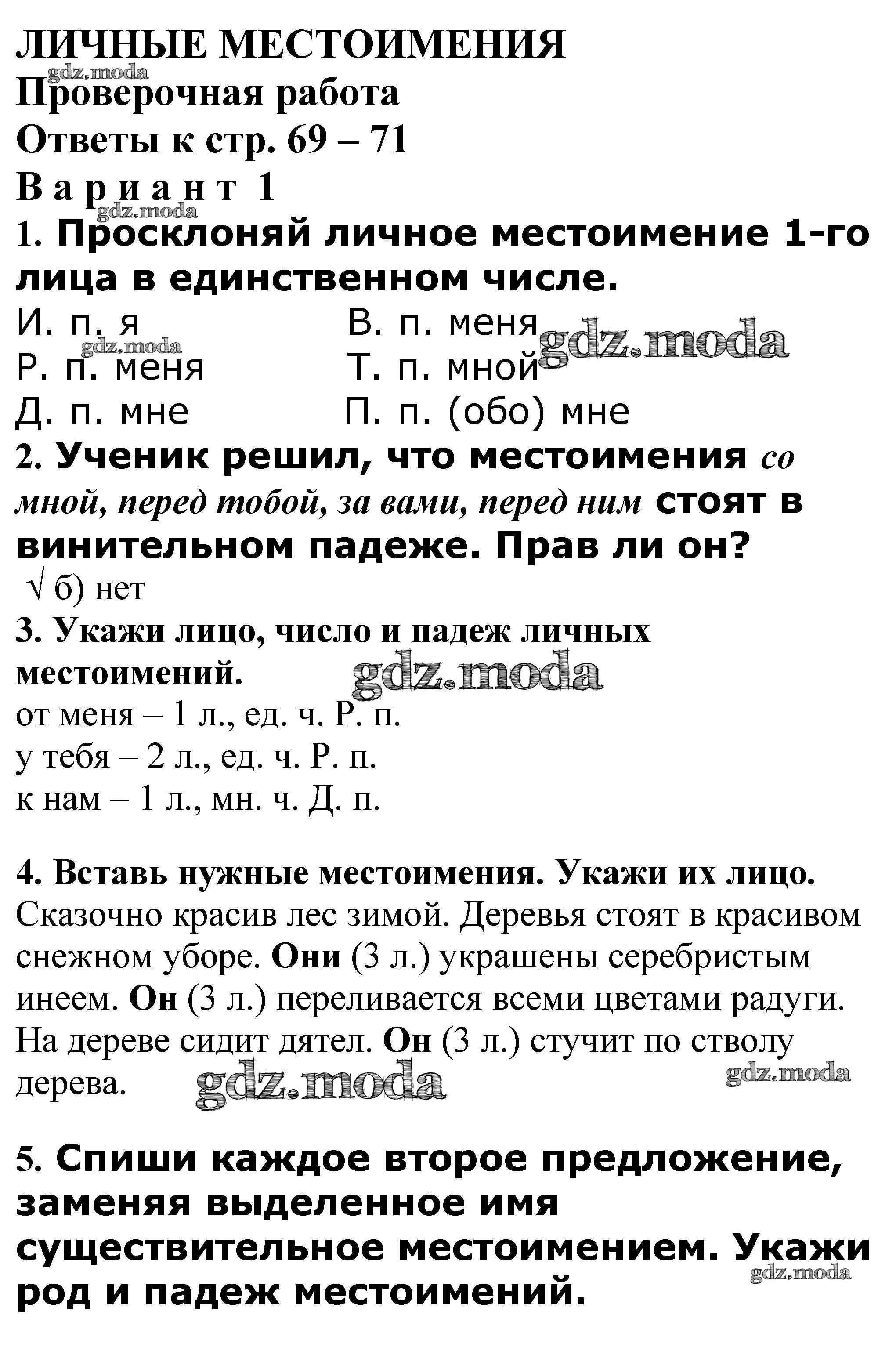 ГДЗ решение к заданию № Проверочная работа стр. 69 – 71 Русский язык 4 класс проверочные и контрольные работы Максимова Т.Н. ВАКО 2017 ФГОС бесплатно на гдз.мода!