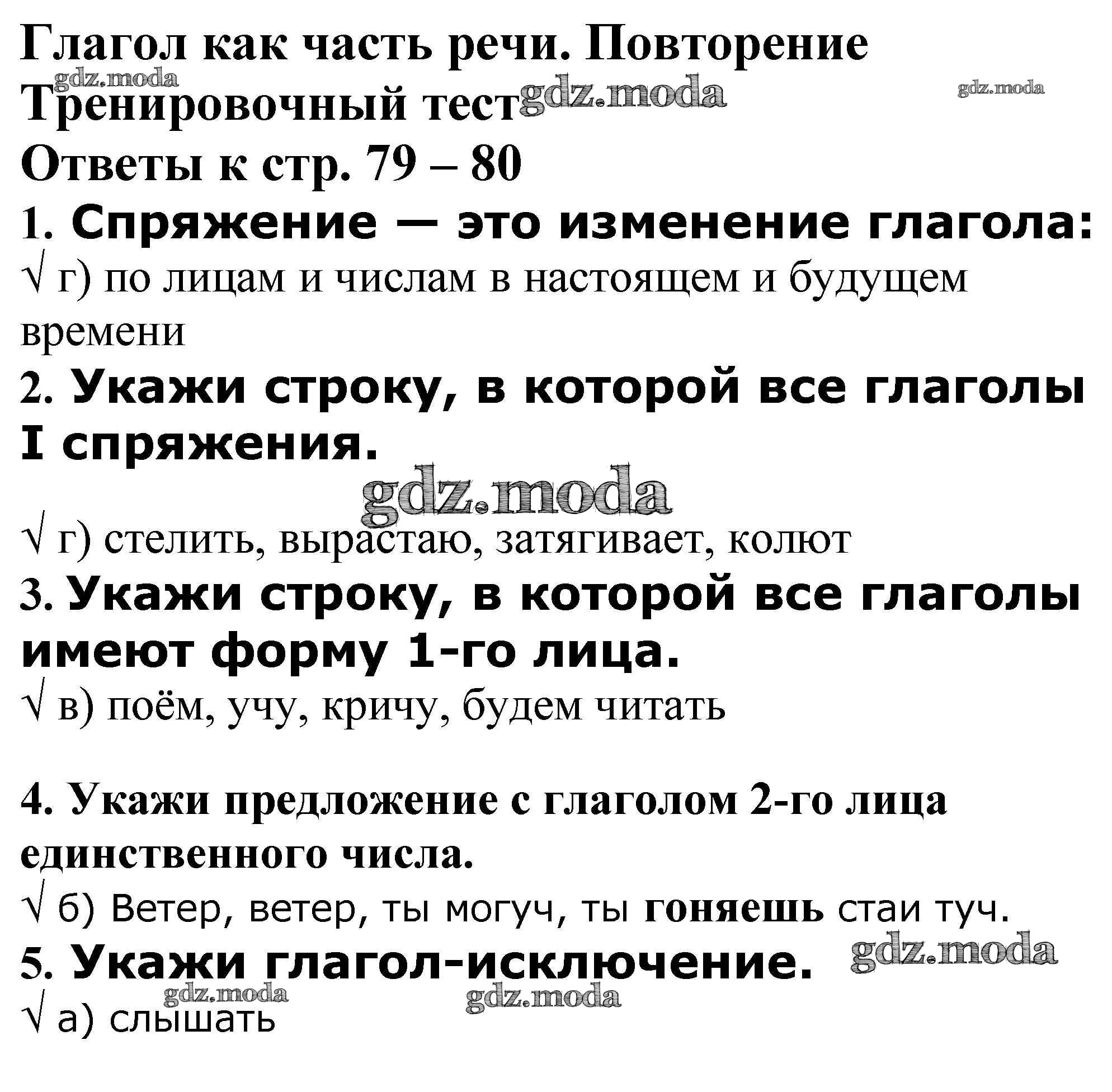 ГДЗ решение к заданию № Тренировочный тест стр. 79 – 80 Русский язык 4 класс проверочные и контрольные работы Максимова Т.Н. ВАКО 2017 ФГОС бесплатно на гдз.мода!