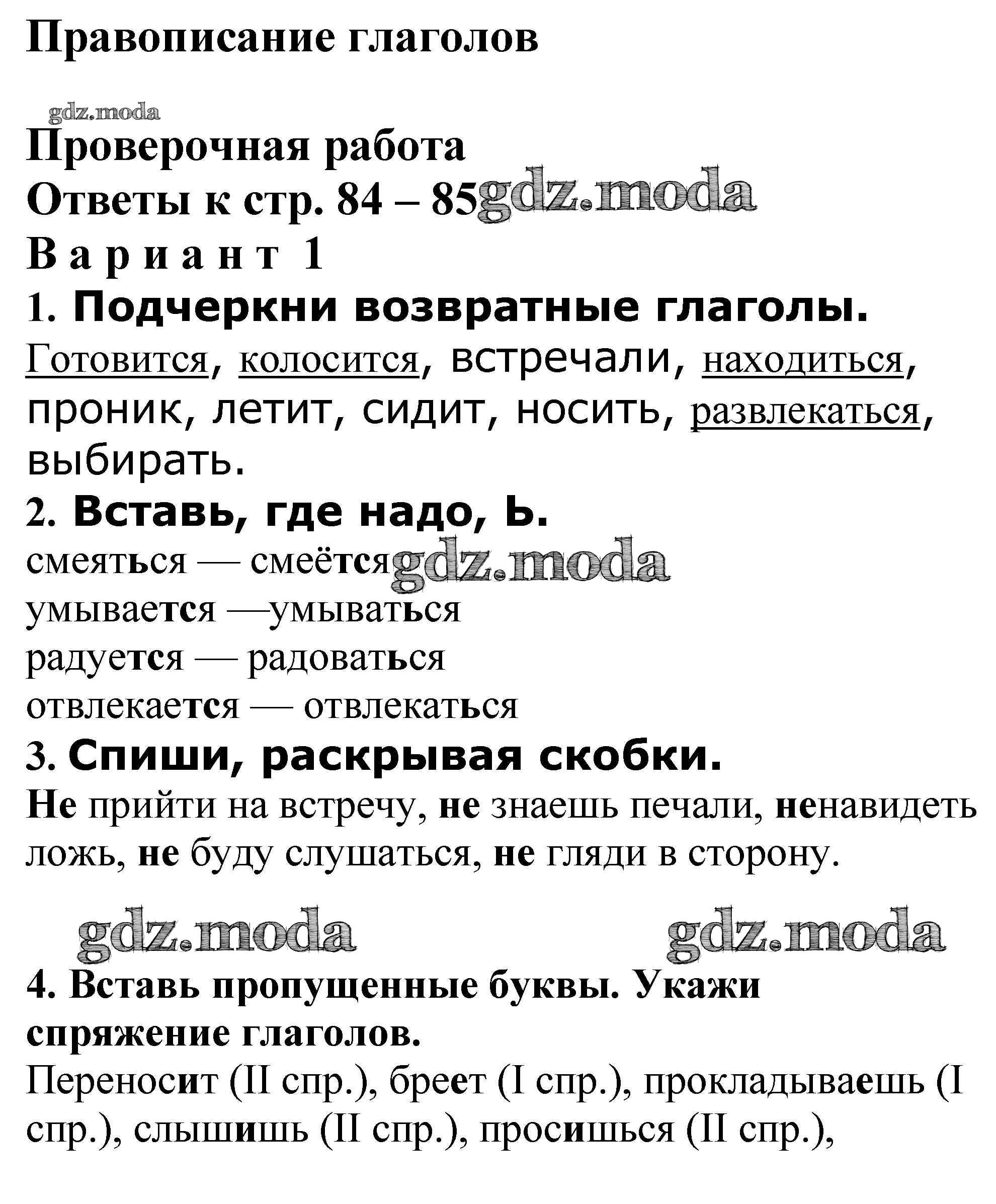 ГДЗ решение к заданию № Проверочная работа стр. 84 – 85 Русский язык 4 класс проверочные и контрольные работы Максимова Т.Н. ВАКО 2017 ФГОС бесплатно на гдз.мода!