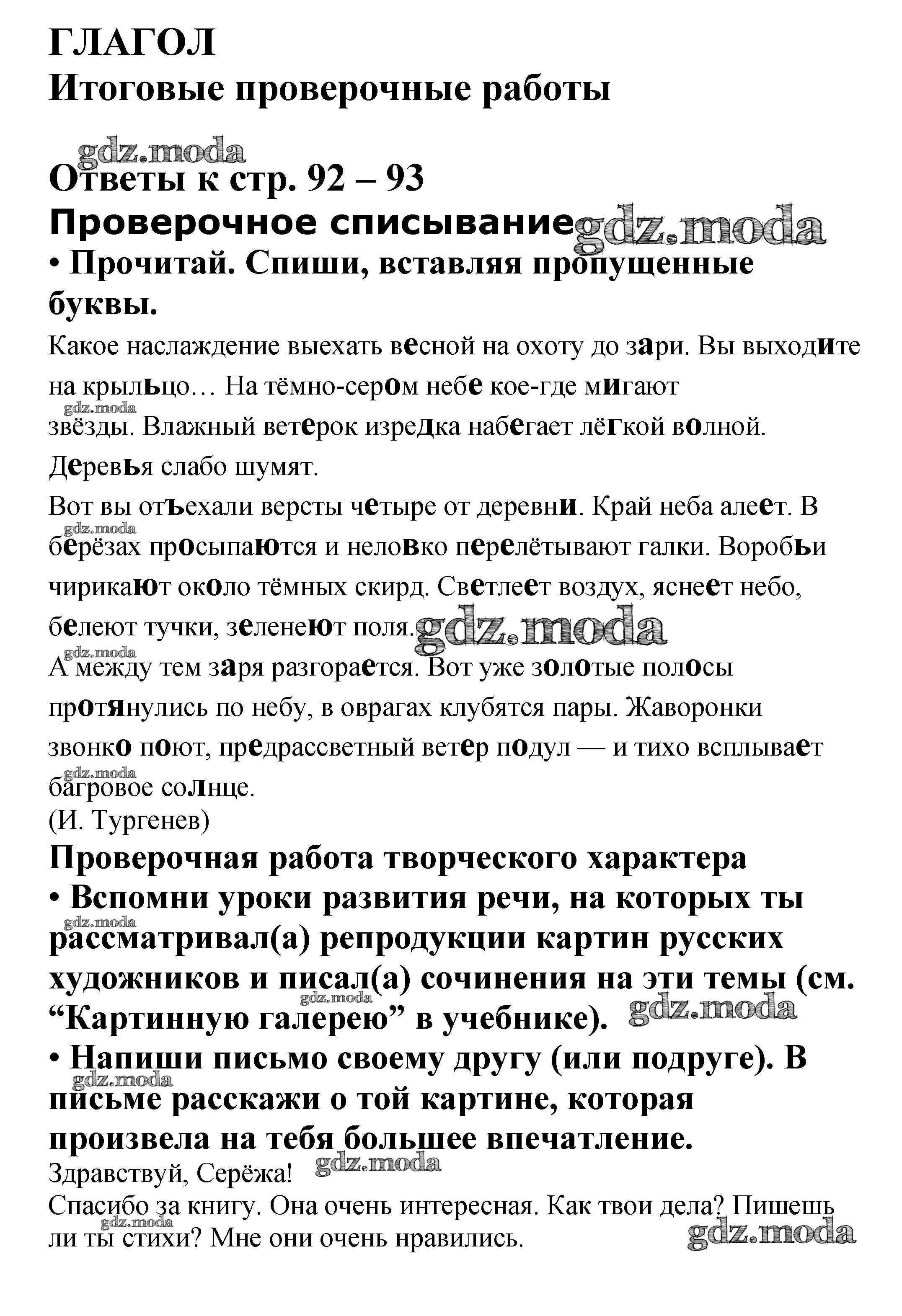 ГДЗ решение к заданию № стр. 92 – 93 Русский язык 4 класс проверочные работы Канакина В.П. Просвещение 2017 ФГОС бесплатно на гдз.мода!