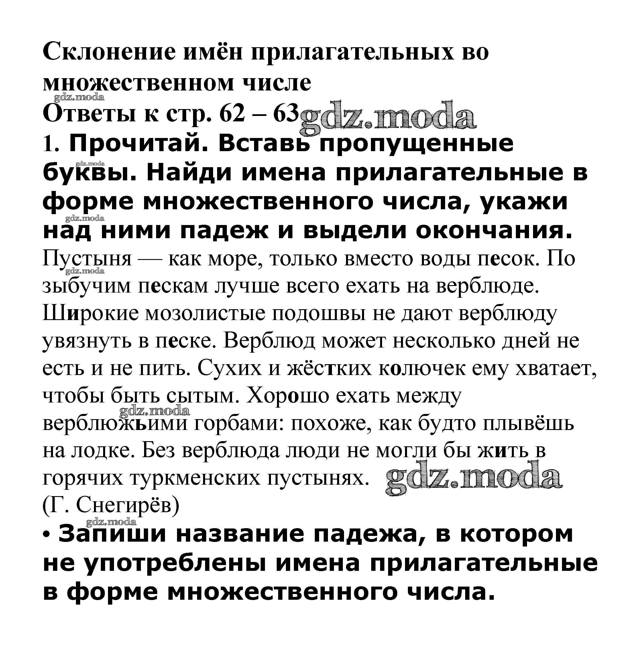 ГДЗ решение к заданию № стр. 62 – 63 Русский язык 4 класс проверочные работы Канакина В.П. Просвещение 2017 ФГОС бесплатно на гдз.мода!